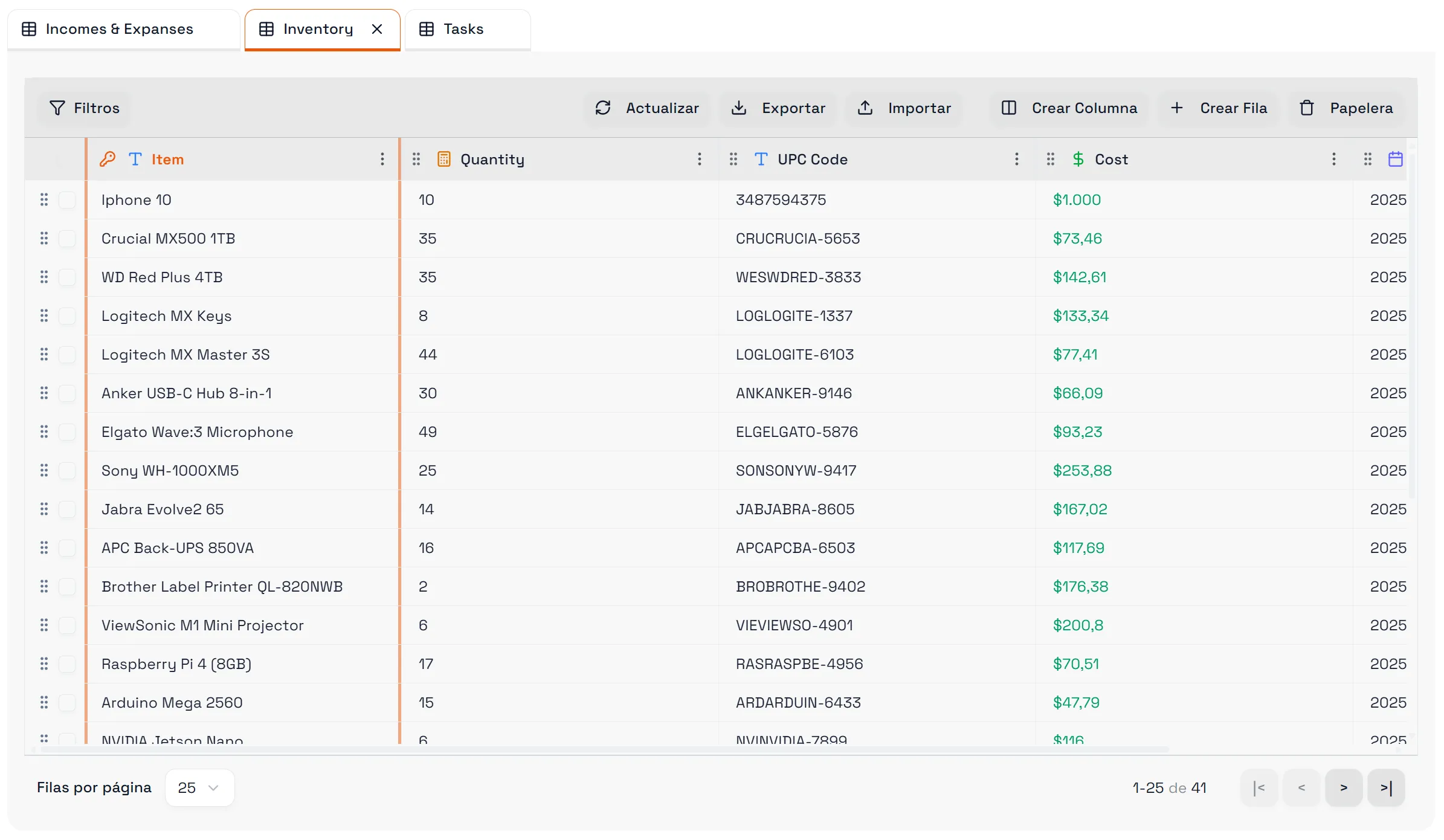 Construye tablas de datos inteligentes con validaci贸n en tiempo real, campos personalizados y filtrado avanzado. Transforma hojas de c谩lculo en poderosas bases de datos estructuradas que escalan con tu negocio.